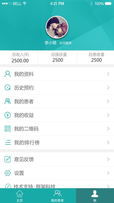 【我的收益】:医生可以通过查看我的收益,可以实时了解医生每次与患者问诊收益情况。