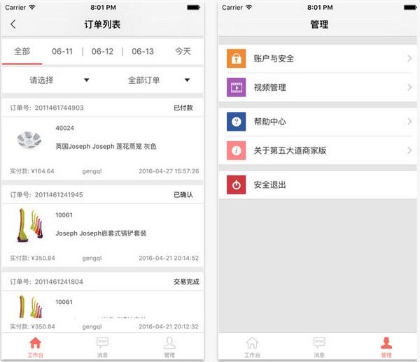 4.消息:第一时间获取商品、订单、退款、系统等消息