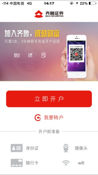 中泰融易开户app是原齐鲁证券推出的手机开户app。齐鲁证券正式更名为中泰证券,中泰融易开户app可以让原齐鲁证券用户们通过手机来开通中泰证券账户,通过实时掌握沪、深A股账户、基金账户,分分钟搞定,投资理财即刻开启。