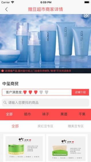 网络店铺: 顾客可在赚豆超市下单购买优惠商品,同时获取美豆和红豆用来做美容。