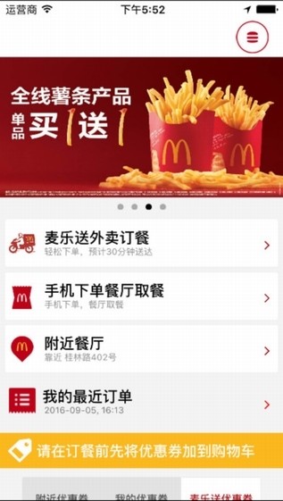麦当劳中国app是一个全新的服务平台。通过麦当劳app下载顾客可以在移动设备上预订餐及享受优惠。顾客到达所选择的餐厅后,只需使用APP扫描餐厅二维码,即可在线支付订单并取餐。