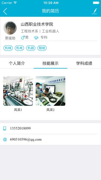 1.图片展示自我风采、个人技能,设置检索标签凸显自身优势!