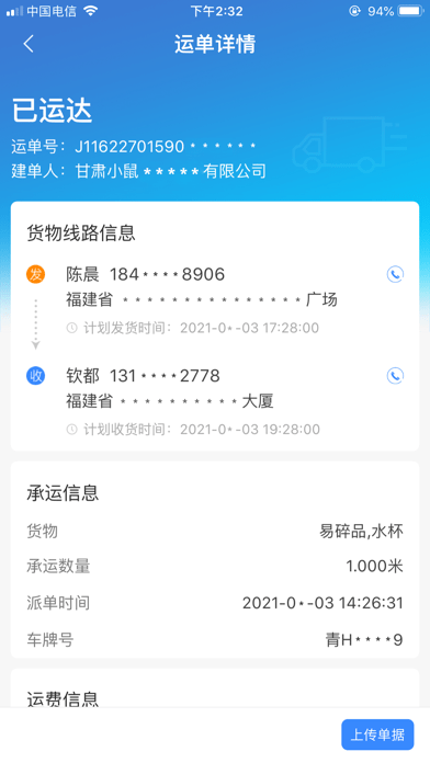 运单管理,可以查看当前运单信息,随时查阅历史运单情况;