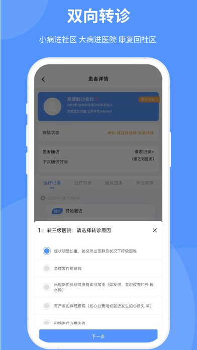 自在呼医生是一款很不错的慢病分级诊疗管理软件,以“基层首诊、双向转诊、急慢分治、上下联动”为核心,形成“小病在基层、大病进医院、康复回基层”的就医格局;实现区域内慢病患者管理与跟踪,达到分级诊疗、双向转诊、远程会诊的目标。